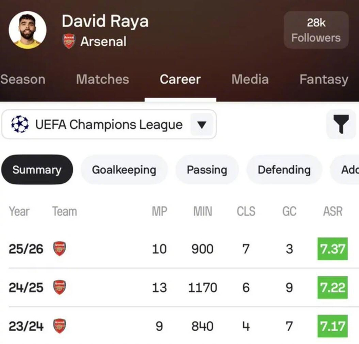 根据Sofascore的统计,拉亚是最近三个欧冠赛季完成零封最多的门将:17 - 拉亚15 - 索默12 - 科贝尔、多纳鲁马。在此期间,拉亚出战的32场欧冠联赛里,有17场保持零封,场均失球数只有0.59个。本赛季,拉亚完成了7次零封,是欧冠联赛里零封次数最多的门将。...